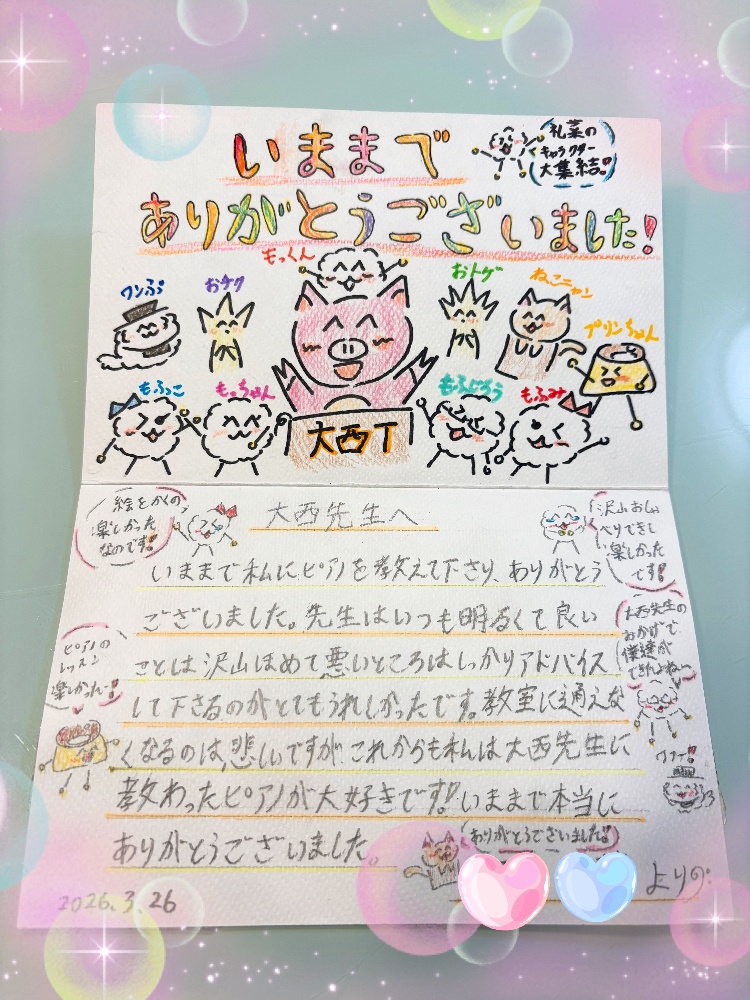 中学生になってからの、勉強・部活・ピアノなどの両立は大変ですが一緒に頑張っていける様、これからも応援いたします。
